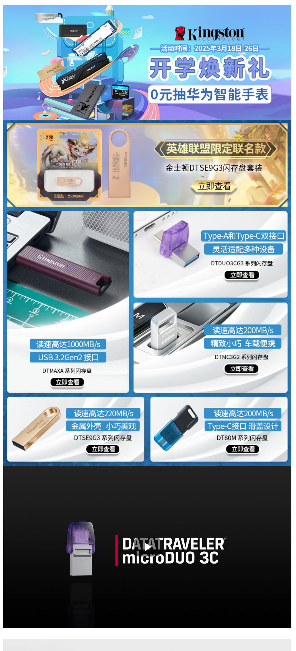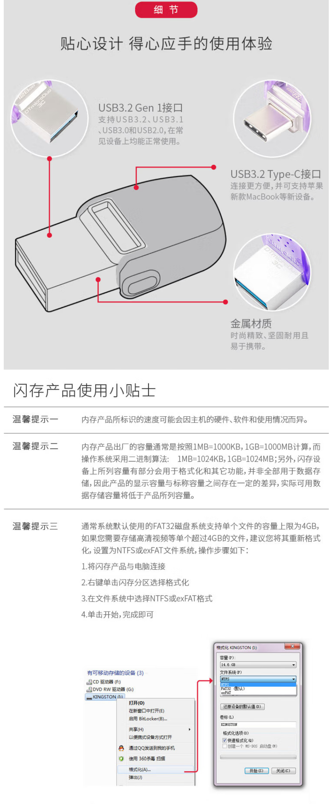 金士顿(Kingston)64GB Type-C USB3.2 Gen1 大容量手机电脑U盘 DTDUO3CG3 双接口设计 读速200MB/s 适用安卓苹果