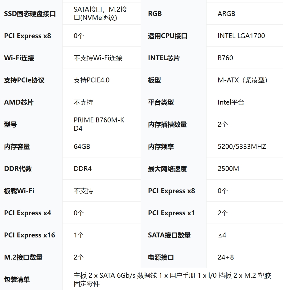 华硕(ASUS)PRIME B760M-K D4 主板 支持 CPU 13600KF/13400F(Intel B760/LGA 1700)