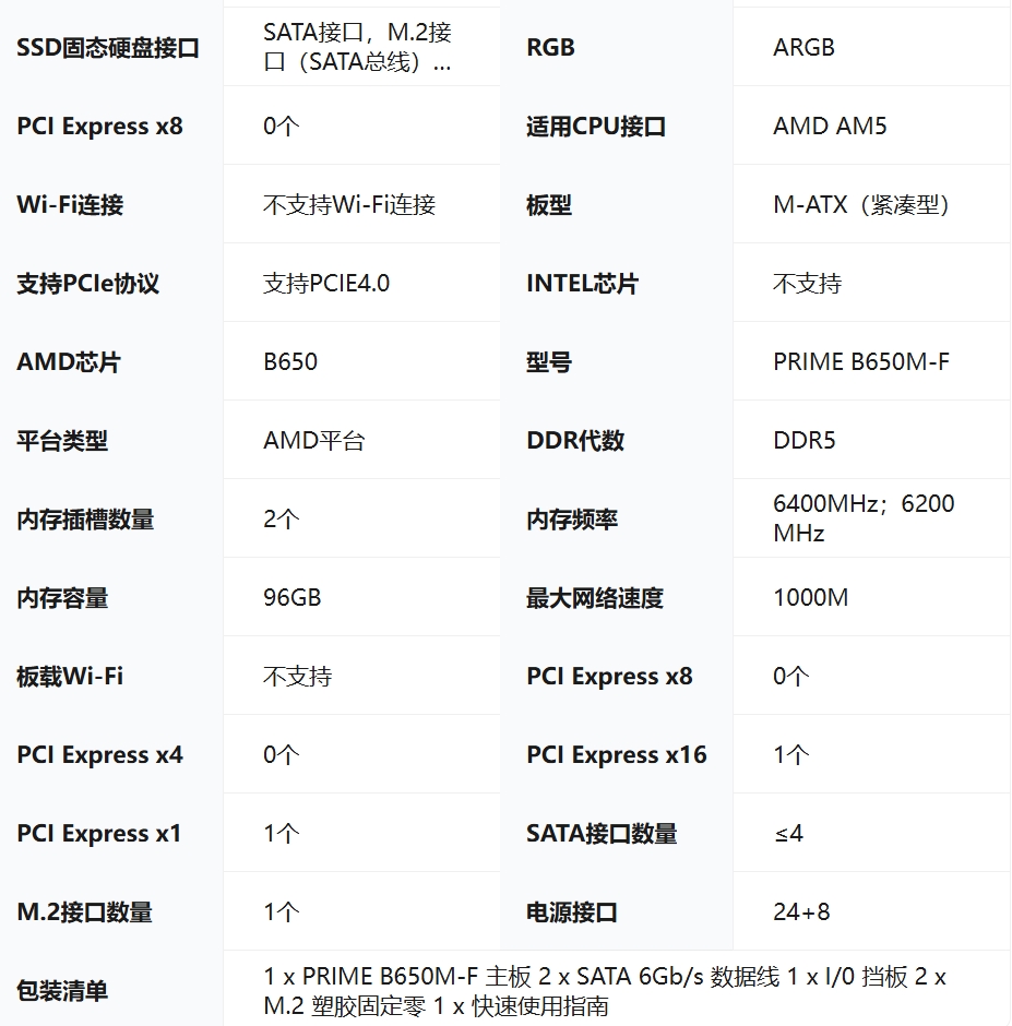 华硕(ASUS)PRIME B650M-F 支持DDR5 CPU 7700X/7600X/7500F (AMD B650/socket AM5)