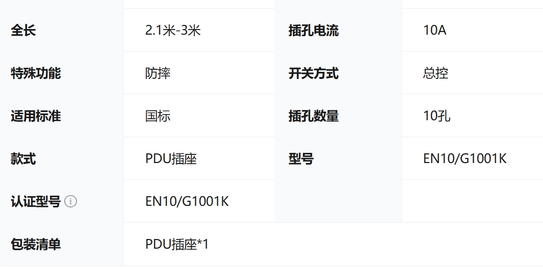 TOWE同为输入国标10A竖装垂直安装PDU工业安全机柜插座 10位10A五孔+3米线+零火双断开关