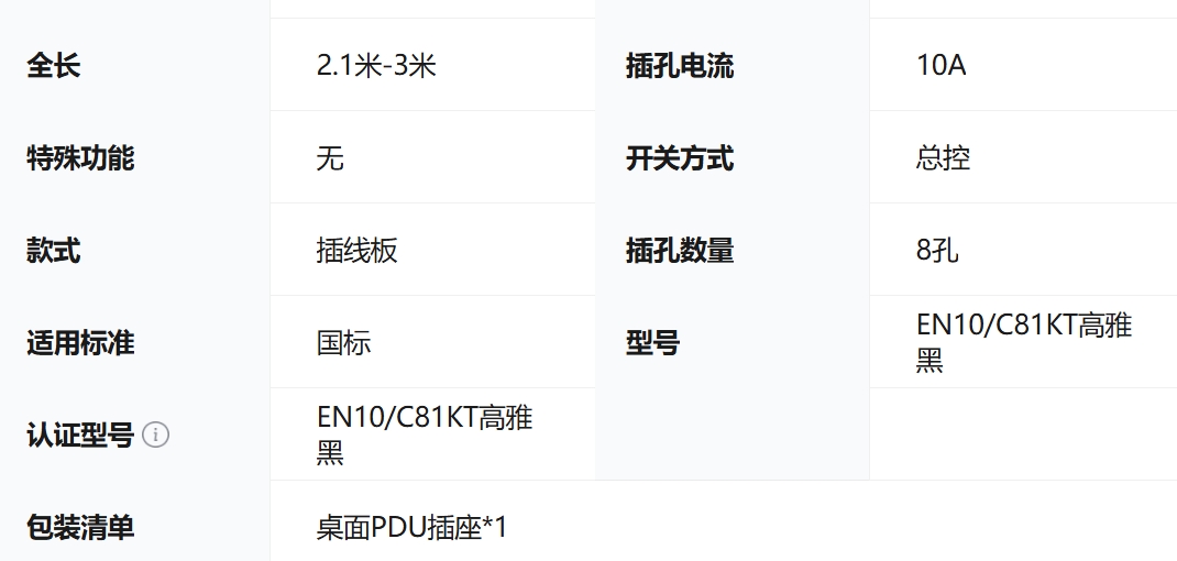 TOWE同为高端可伸缩弹簧线电竞插座10A总控工业工程插排 8位10A+总控开关+弹簧线(高雅黑)
