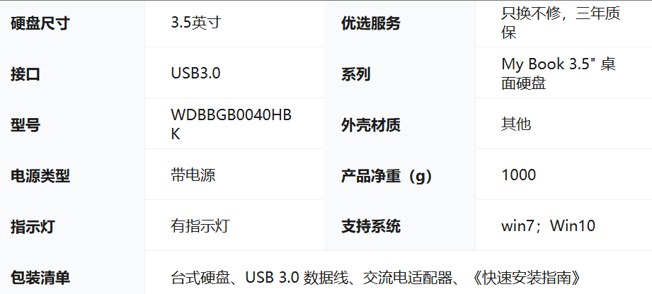 西部数据(WD)移动硬盘 8TB WDBBGB0080HBK