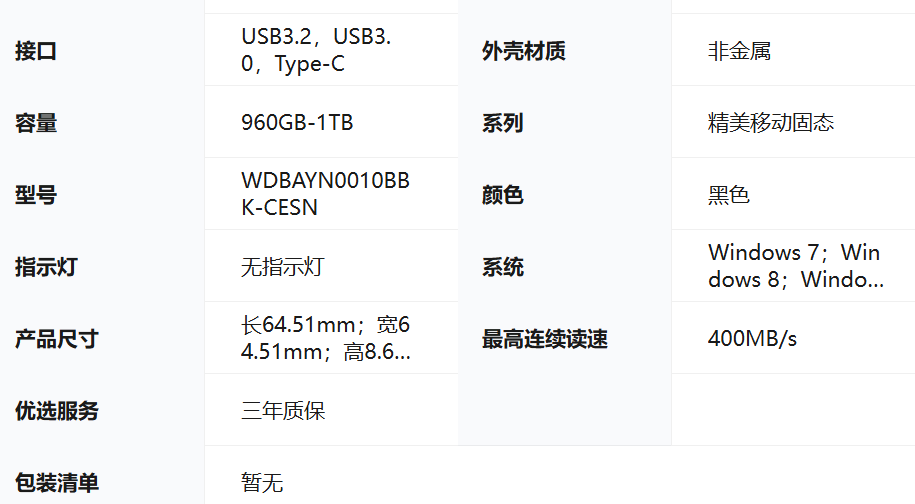 Elements SE新元素 SSD 1TB WDBAYN0010BBK