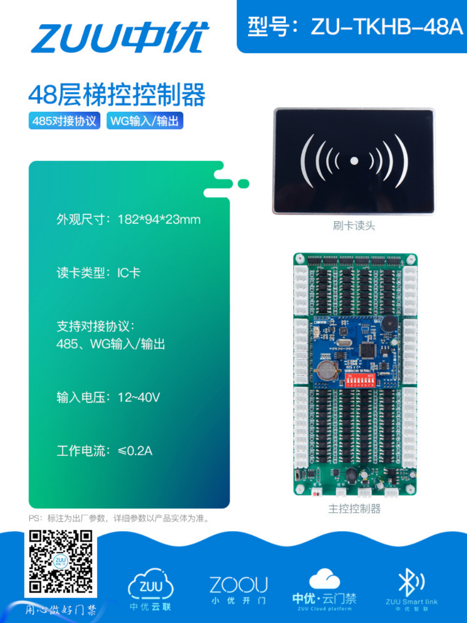 在超高层楼宇场景中,电梯需精准管理 48 层复杂楼层权限,保障高效通行与安全管控。中优 ZU-TKHB-48A 48 层梯控控制器,凭借 48 层控制能力、双协议兼容、宽电压适配等特性,成为超高层梯控的 “智慧中枢”,构建精细化、智能化的楼层权限管理体系。