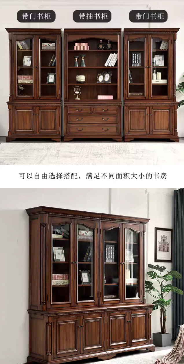 珍姐美式全实木北美核桃木书柜家具书橱组合书架置物架带玻璃门 · 两门书柜(带门)