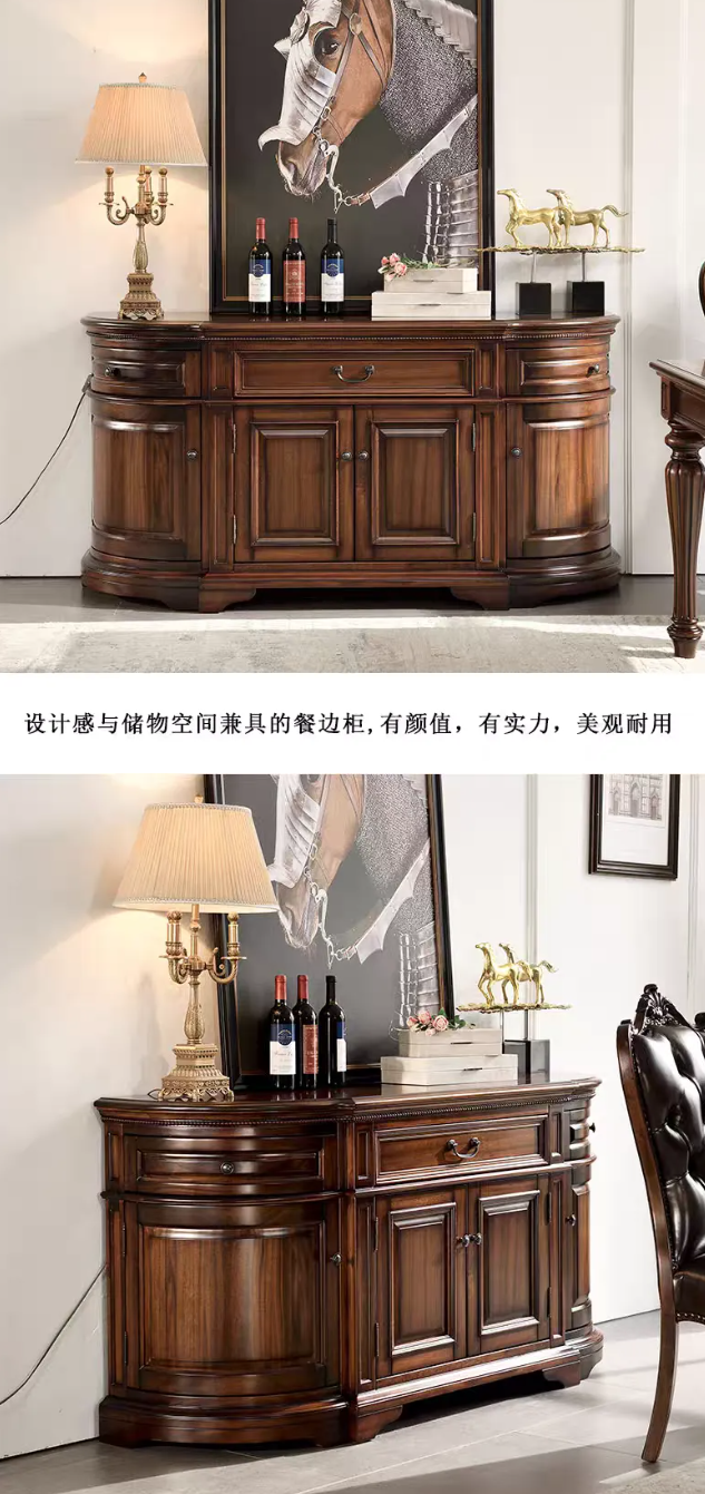 珍姐美式核桃木餐边柜半圆实木玄关桌