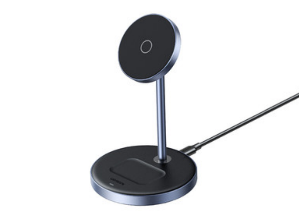 CD317,15W 二合一支架式 手机磁吸无线充电器(非MFi款) 功率:15W 输入:USB-C 输出:磁吸区Qi-15W(单出时),底座区Qi-5W 协议:Qi 5W/7.5W/10W/15W 材质:PC+ABS/(UL94-V0防火) 尺寸:93(L)*93(W)*148(H)mm 配件:1米 C-C线 包装:彩盒,黑色,产品条码:6957303896684,重量(g):294,箱规:53,整箱毛重(kg):16.8,整箱尺寸(cm):52.5*44.5*47,起订量:5
