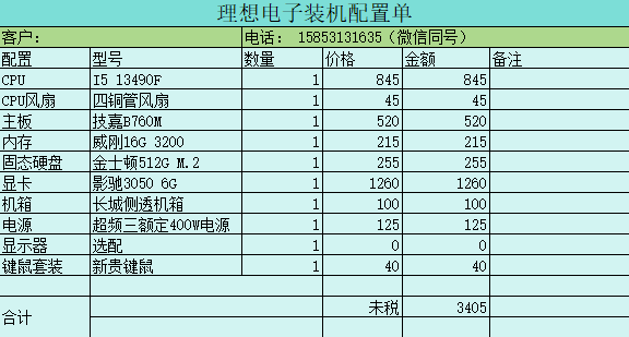 理想L5 13400F 16G +1T+3050 6G