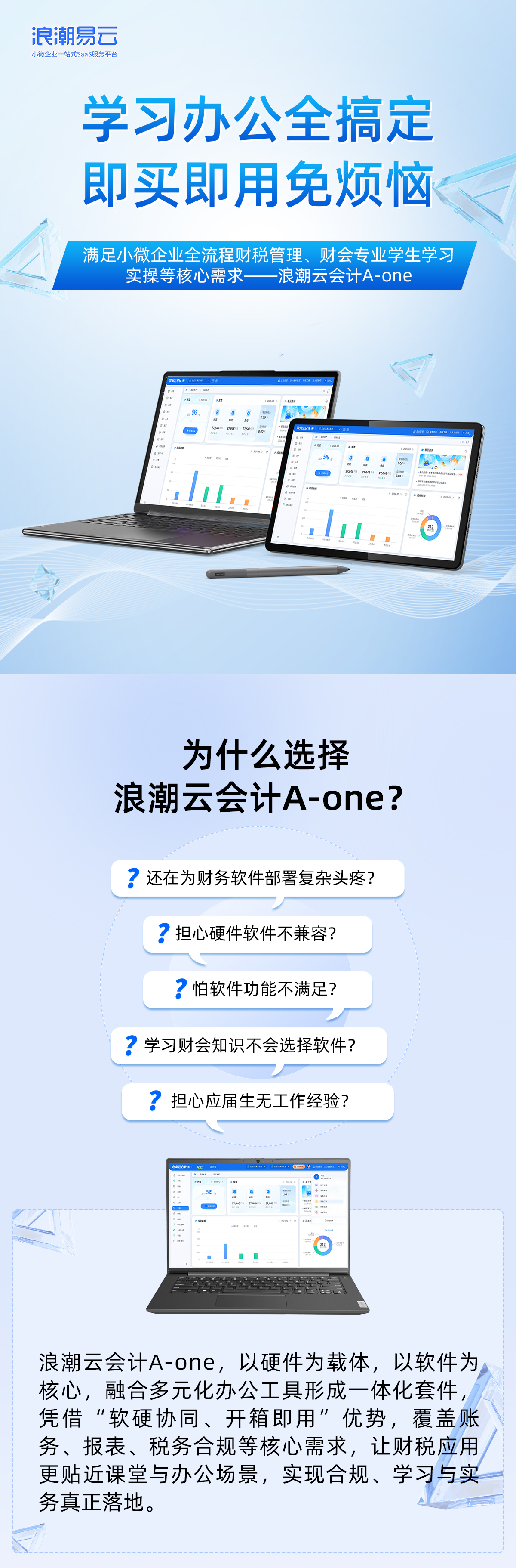 浪潮云会计A-one,满足小微企业全流程财税管理、财会专业学生学习实操等核心需求-