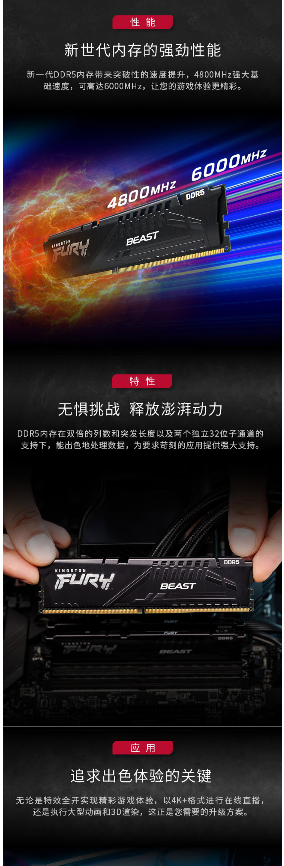 金士顿 (Kingston) FURY 16GB(8G×2)套装 DDR5 5600 台式机内存条 Beast野兽系列 骇客神条