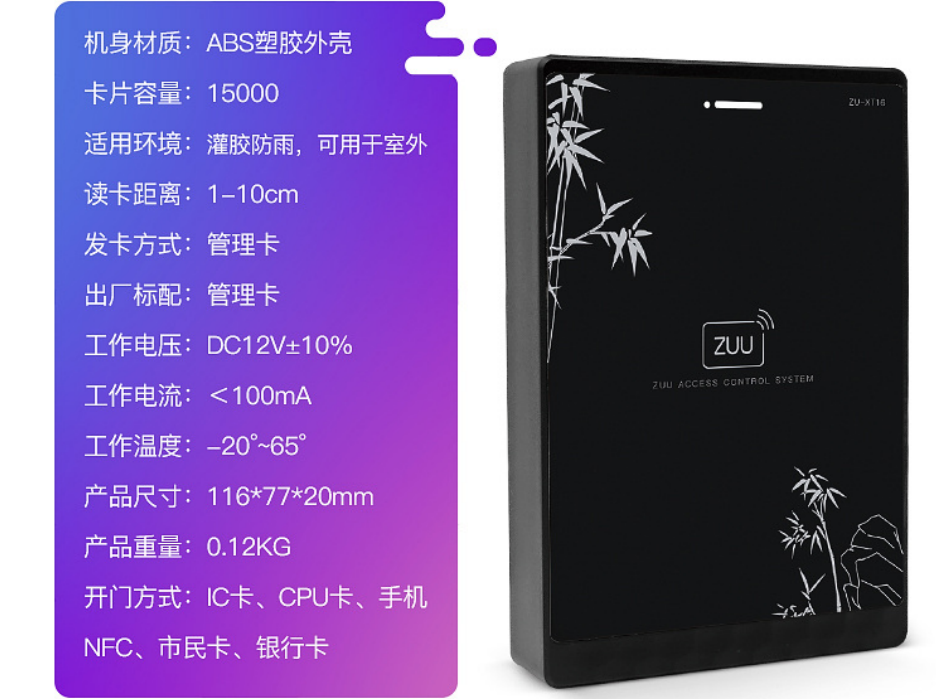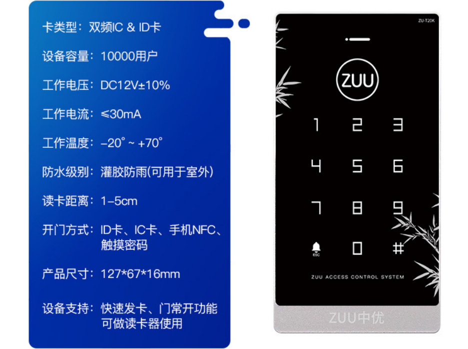 指纹感应卡门禁机(网关版)ZU-TF100W