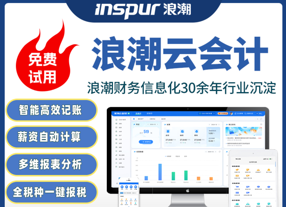 浪潮云会计,专业版,1用户/3账套(功能强大)